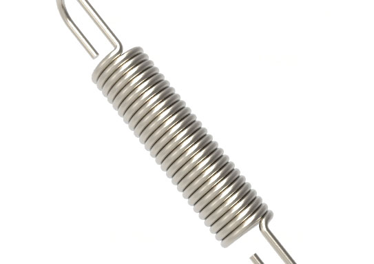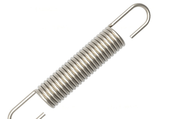 長臂半圓鉤環拉伸彈簧,由彈簧末端彈簧圈彎扭至中心而成,彎扭處形成高的應力,適用于大旋繞比,而受載何較小的彈簧。長臂鉤環,多應用于鋼絲直徑較小的彈簧。所有用彎折加工構成的鉤環,都在鋼絲的變折處產生比較大的應力集中,所以,用彎折加工構成鉤環的端部結構,建議應用于材料直徑在4mm以下的彈簧。但由于這種方法簡單,有時也用于材料直徑達10mm左右的彈簧,但應使彎折圓角半徑盡可能增大,而且要圓滑,不得有傷痕。