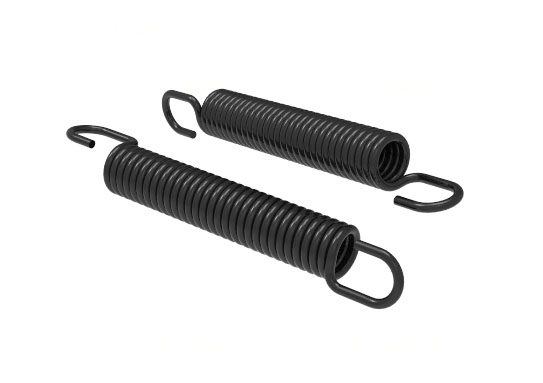 長臂偏心半圓鉤環拉伸彈簧,由末端彈簧圈彎折加工而成,彈簧鉤環位于彈簧圈邊緣最外側切線位置,由于載荷的偏心和鉤環根部的90度折彎,使鋼絲承受了較大的附加應力,這種端部結構型式適用于中等旋繞比C=8-15,載荷小或不重要的彈簧。